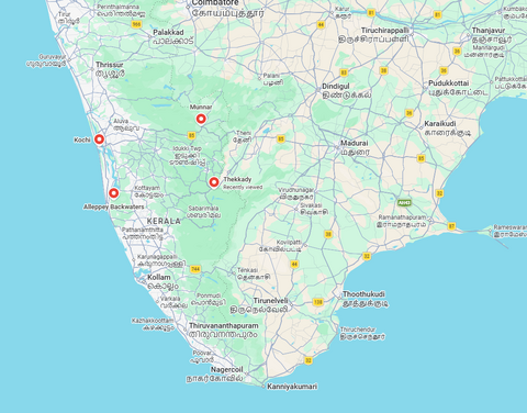 Kochi, the historic state capital, quiet backwaters of Alleppey, Thekady, spice capital of india and the tea plantations in the hill country around Munnar.